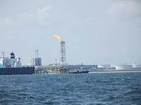 container en olietankers voor anker. Echt vreselijk druk en ' nachts niet echt prettig om te doen.