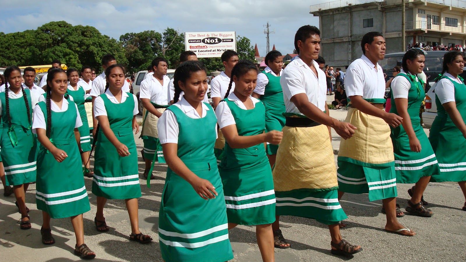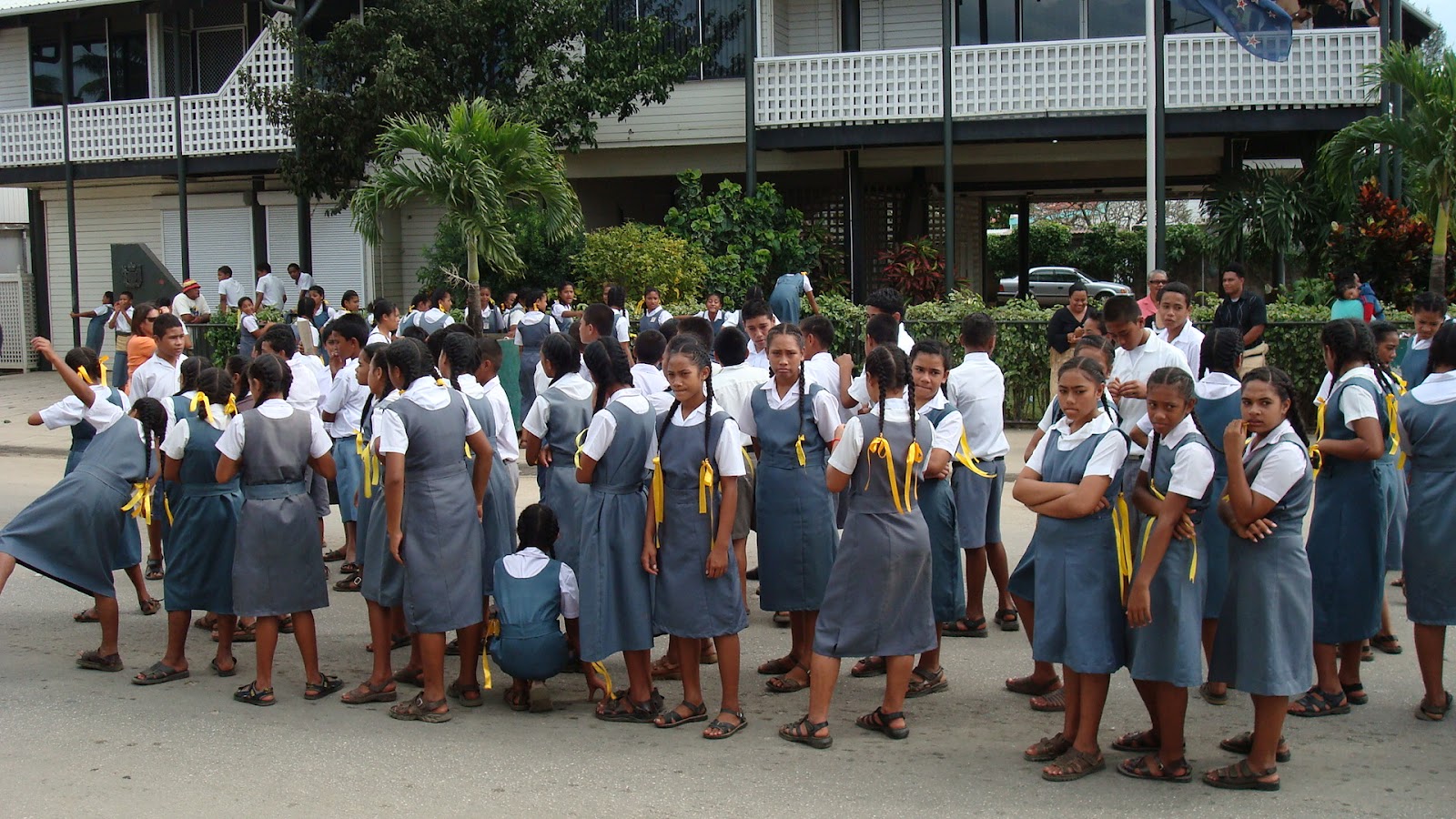 We liggen hier nu een weekje en zijn eigenlijk best blij dat we Tonga niet hebben overgeslagen. Heel apart hier. Volgens mij het meest traditionele eiland wat we tot nu toe buiten de San Blas Eilanden zijn tegengekomen. Tongatapu is het grootste eiland met de meeste bewoners ca. 25.000 en echt enorm veel kerken van allerlei stromingen. Bij elke kerk hoort een school met de eigen kleur schooluniform.Meisjes in jurkjes en jongens in de tradionele rokken, zo leuk om te zien.