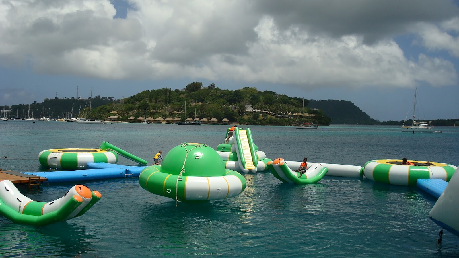 Zondagochtend vroeg zijn we dan op weg gegaan naar Vanuatu (525 Nm). De weersverwachtingen zagen er gunstig uit, maar na een uur of twee braken de eerste buien los met de daar bijbehorende windstoten. Lekker begin. Mr. gribfile had het deze keer helemaal mis met de wind. We hebben van alles gehad, wind op kop, pal van achteren, geen wind en veel wind. Niet echt een hele prettige zeiltocht. Het eten ging ook niet echt makkelijk, noem het gerust maar het voederen der dieren. Uit een hoog bord alles naar binnen schuiven. Hier de baai invaren was ook een wild stukje.