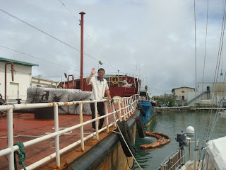 Je komt hier eerst langs een groot dock en ja hoor niet te geloven The Islander een grote boot uit jawel Winschoten. Hoe is het mogelijk. Verder heel veel vissersboten uit China. Die zitten net als wij :-) ook overal.