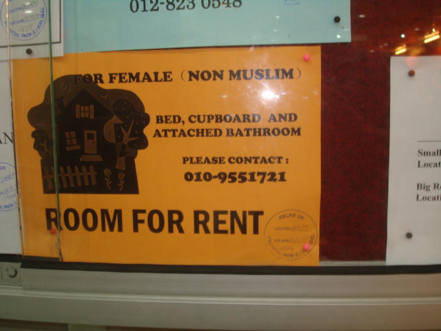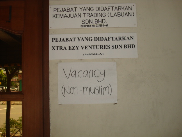 Heb wat foto's gemaakt van advertenties die hier bij de supermarkt hangen om te laten zien hoe ze hier omgaan met moslims en niet-moslims. Heel anders dan thuis. Niets geen discriminatie als je geen moslim in dienst wil, die 5 x per dag gaat bidden.