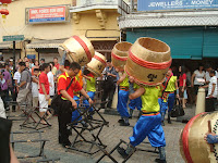 Gisteren dan het grote feest. Het begon om 18.00 met allerlei toespraken maar dat hebben we maar overgeslagen. Het was druk druk druk wat een mensen. Overal hadden ze een podium met verschillende dingen zoals toneelstukjes voor kinderen, trommelaars, Chinees concert. Eigenlijk teveel om op te noemen. Dit keer dan wel een groot vuurwerk