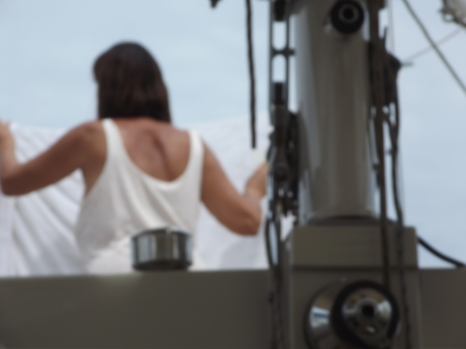 Afgelopen vrijdag 29.7 op weg naar 't Noorden Prachtig weer met een mooi windje en goeie voorspellingen. Plotseling betrokt het weer en binnen 15 minuten was alles zwart. We hadden zoiets van een stevige bui en wind en hebben gelijk de zeilen binnengehaald Die stevige wind trok aan tot 42kn, niet echt een pretje. Het zonnescherm werd er binnen enkele minuten dan ook aan flarden geblazen.