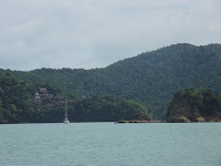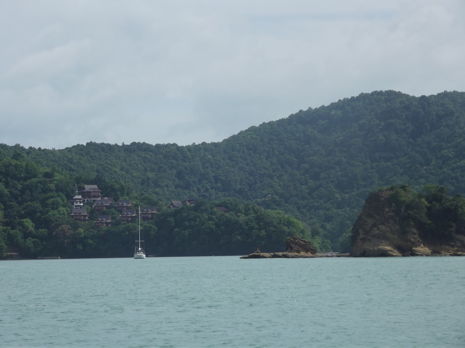 De weerberichten zagen er goed uit maar zoals gebruikelijk klopte er weer niets van. Weinig wind, op kop met een enorme deining. Doodmoe van de afgelopen nacht nog even 12 uur schudden,hossen en rollen. We gingen niet echt hard dus het zuiden van Langkawi was de beste optie. De Pilot erbij genomen en Telok Boton is een mooie beschutte baai in zowel NO als ZW seizoen. Dit keer had het boek helemaal gelijk. Om 17.00 uur hebben we ons anker laten vallen en liggen zo plat als een dubbeltje in deze prachtige baai.